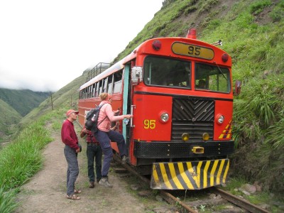 Thank god zijn er wel de vertrouwde Chifa (het stikt in Peru en Ecuador om overklaarbare redenen van de Chinese restaurants) en pollo con aroz. Culinaire toppers! Gelukkig was de treinrit dit “afzien” meer dan waard: een erg spectaculaire rit met een gammel treintje door valleien, diepe ravijnen en over hoge bergen. Erg gaaf! Kijk hier maar eens.