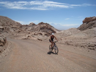We rijden vele uren door de woestijn en dan ligt daar in een groene oase een stadje: San Pedro. Hier is opeens voldoende water beschikbaar en hebben ze blijkbaar goed naar de waterleer van onze Prins Wim-Lex geluisterd. Toerisme is de belangrijkste inkomstenbron en deze komen er dan ook gelukkig meer dan voldoende. Vlakbij ligt de Valle de la Luna (waar kennen we die naam van?) en hier maken we een mooie tocht per mountainbike. Best afzien met 35 graden. Zie hier de foto´s.