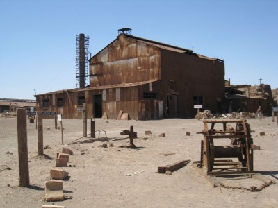 Na San Pedro door naar Iquique. Nog steeds in de woestijn maar nu aan zee. Iquique en omgeving is vooral groot geworden door de nitraatwinning tijdens de vorige eeuw. Dit leidde tot grote rijkdom maar helaas was de nitraatboom van korte duur. Vooral na WOII zakte de vraag naar nitraat in. Dit leidde tot verval. Sommige steden werden zelfs helemaal verlaten en liggen er nu als een spookstad bij. Humberstone is een dergelijke spookstad. Heel apart om er rond te lopen. Alles staat er nog, maar het is volledig verlaten en de tand des tijds heeft zijn werk gedaan. De wind giert door de oude straatjes en als je het oude hotel, theater, fabriekshal of de vele huisjes ingaat, piepen en kraken de deuren als in een goede horrorfilm.